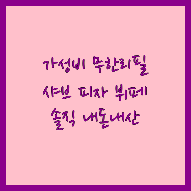 [업체 소개] 전국 최초로 수제 프리미엄 치킨과 피자를 무제한으로 즐길 수 있는 곳! 피자와 치킨 외에도 다양한 사이드 메뉴를 마음껏 즐길 수 있어 학생들이나 주머니 사정이 가벼운 신혼부부에게 딱이에요. 단품 포장/배달도 가능해서 집들이 메뉴로도 좋아요.