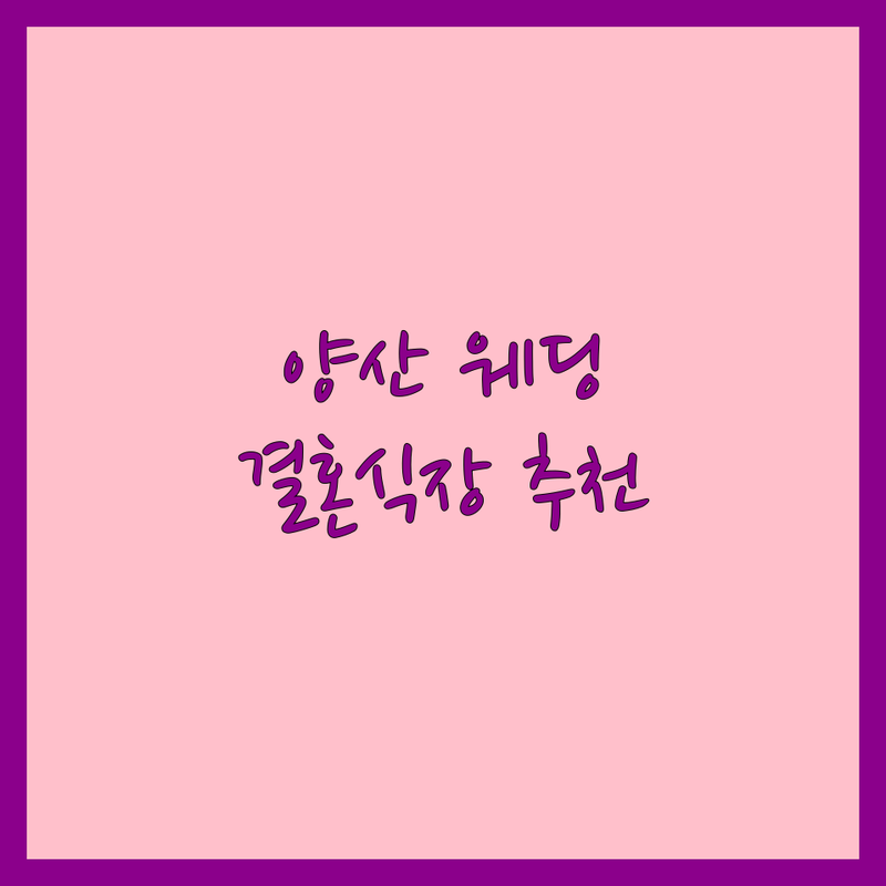 🔍 양산 웨딩홀, 발품 팔아 찾은 핵심 정보가 필요하신가요?